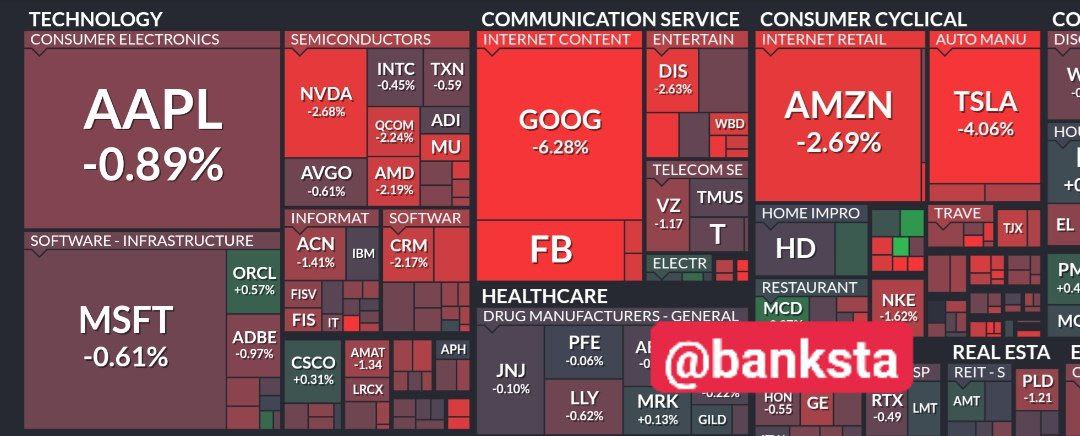 Americký trh pokračuje v poklesu na 3 % v obavách, že agresivnější přístup Fedu k inflaci uvrhne ekonomiku do recese. @banksta