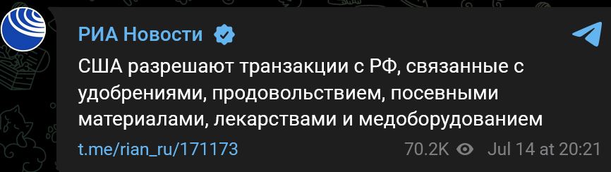 Zdroj https://t.me/rian_ru/171173 z 14.07.2022