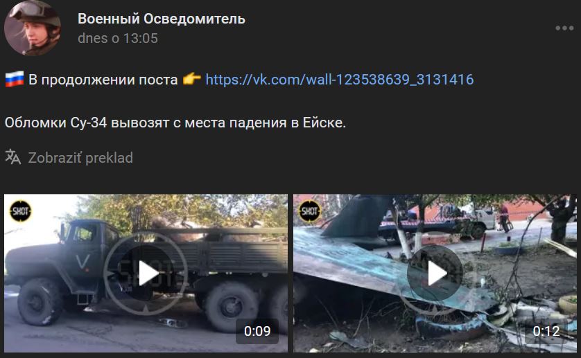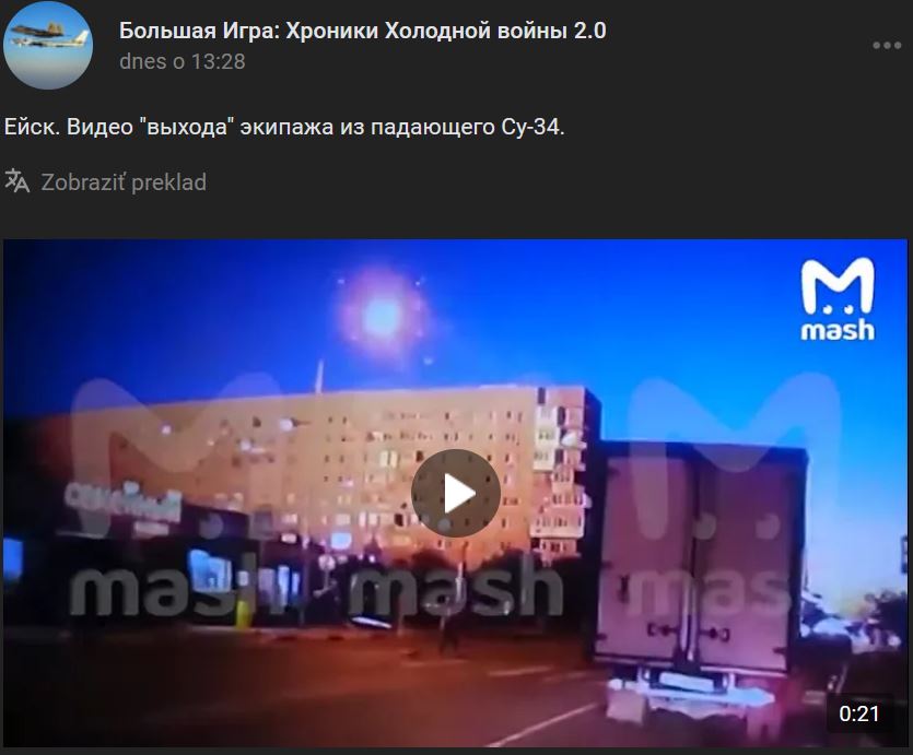 Prehľad správ https://tass.ru/padenie-su-34-v-eyske k 20:15 hod: