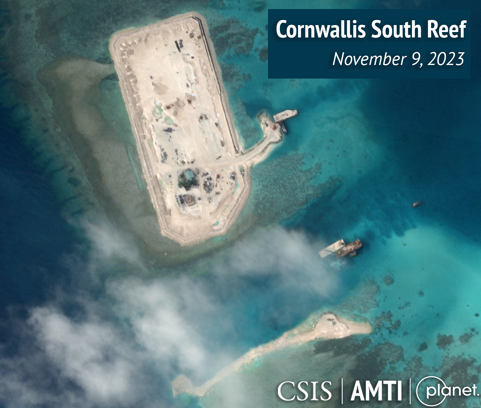 Tieto bagre, ktoré vidno na záberoch, ako pomáhajú pri masívnom rozširovaní útesu Barque Canada Reef a prehlbovaní prístavov na Pearsonovom útese a ostrove Namyit, sú rovnakého typu, za ktorého používanie počas kampane budovania ostrovov v rokoch 2014 - 2017 bola Čína kritizovaná kvôli ich nadmernému ekologickému vplyvu.