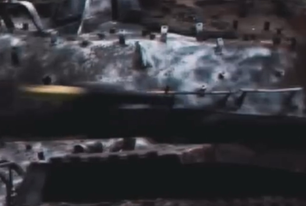 Urobil som prekryv posledného snímku pred výbuchom a prvého snímku výbuchu: fialové a modré línie vyznačujú prekurzor, prednú hranu hlavnej nálože a koniec strely, zelená je približne osa strely/smer pohybu. Je zrejmé do čoho narazil prekurzor a kde asi bola hlavná nálož. Bohužiaľ, video je tak rozmazané, že sa nedá odhadnúť, či sa strela vychýlila z dráhy alebo zlomila - alebo nie... Druhý (zadný) držiak zmizol, z "predného" zostala polka...