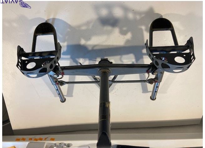 Ak by bolo ovládanie smerovky doprednym zatlačením pedála,znamená to,že tie pedále ovládajú 3 prvky-horny brzdy,dopredny smerovku,ale ten pedál má aj tiahlo,to znamená zatlačením nadol,písal som to preto,že si nedokážem predstaviť šliapať na spodný pedál smerom nadol a zároveň budem tlačiť a ovládať smerovku,