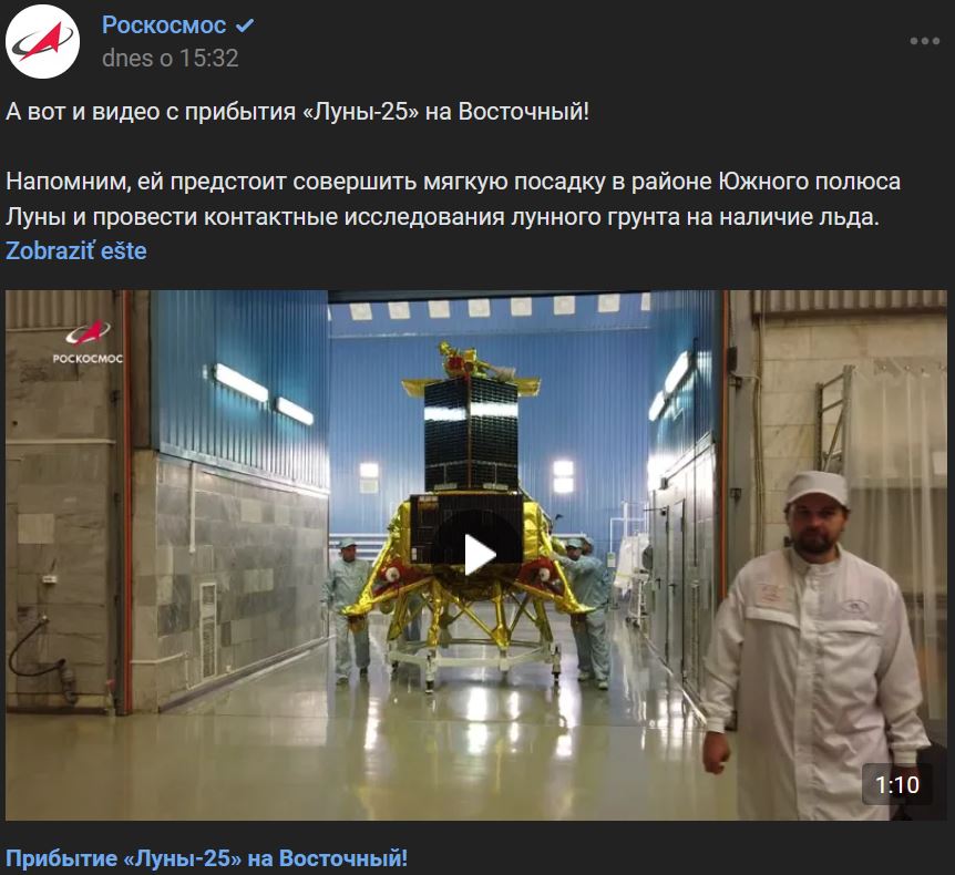 Luna-25 (Луна-25) bola doručená na Vostočnyj!