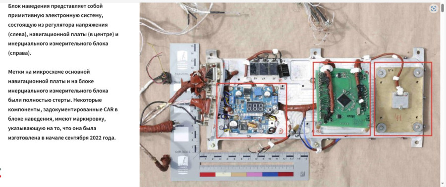Navádzacia jednotka je primitívny elektronický systém pozostávajúci z regulátora napätia (vľavo), navigačnej dosky (uprostred) a inerciálnej meracej jednotky (vpravo).