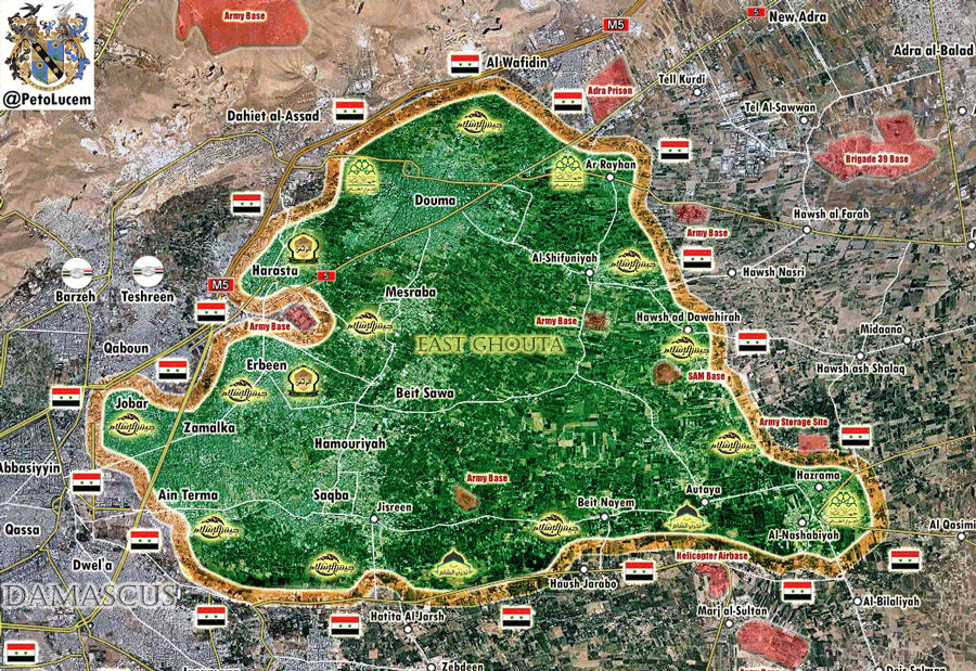 Mishraba je presne v strede uzemia, ktore deli zakladnu SAA v Haraste a dobyte uzemie na vychode. Pas, ktory treba obsadit na rozdelenie Vychodnej Ghouty je siroky cca 3 km