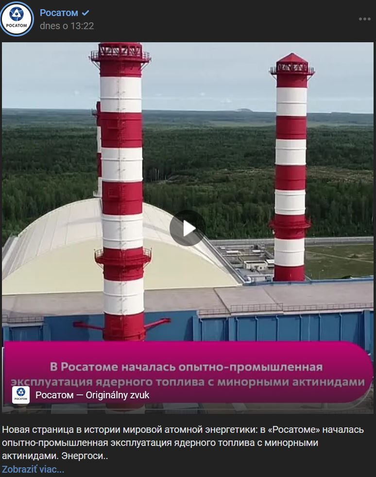Rosatom (Росатом) začal skúšobnú prevádzku jadrového paliva s malým obsahom aktinidov. Energetické systémy 4. generácie a uzavretý jadrový palivový cyklus (ЗЯТЦ) sú už za rohom.