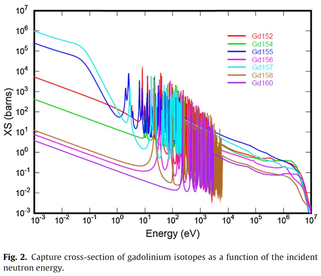 Pre pochopenie úlohy gadolinia v jadrovom palive: gadolinium má veľký účinný prierez pre tepelné neutrony, desiatky až tisíce barnov, takže intenzívne pohlcuje tepelné neutrony. Tým spomaluje reakcie, pretože pohltené neutrony chýbajú v reťazovej reakci.