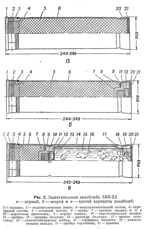 Rôzne verzie modernejších zápalných bombičiek ZAB-2,5