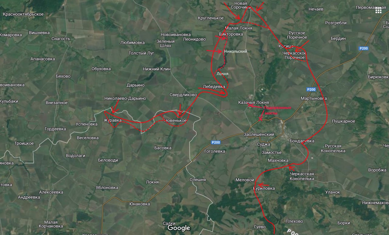 Moje zdroje ze sujanského směru hlásí, že AFU dnes vyhodila do povětří nejméně dva silniční mosty přes řeku Lokňu (viz na mapě).