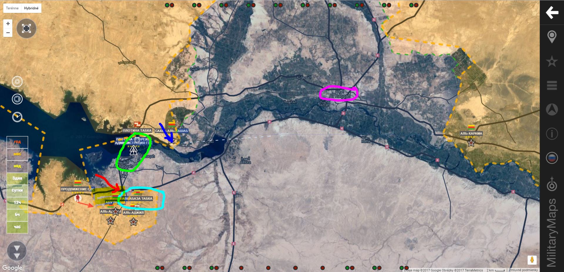 SDF+ obsadila Ayad Khabir. Je to aj križovatka kontrolujúca prístup k letisku Tabka.