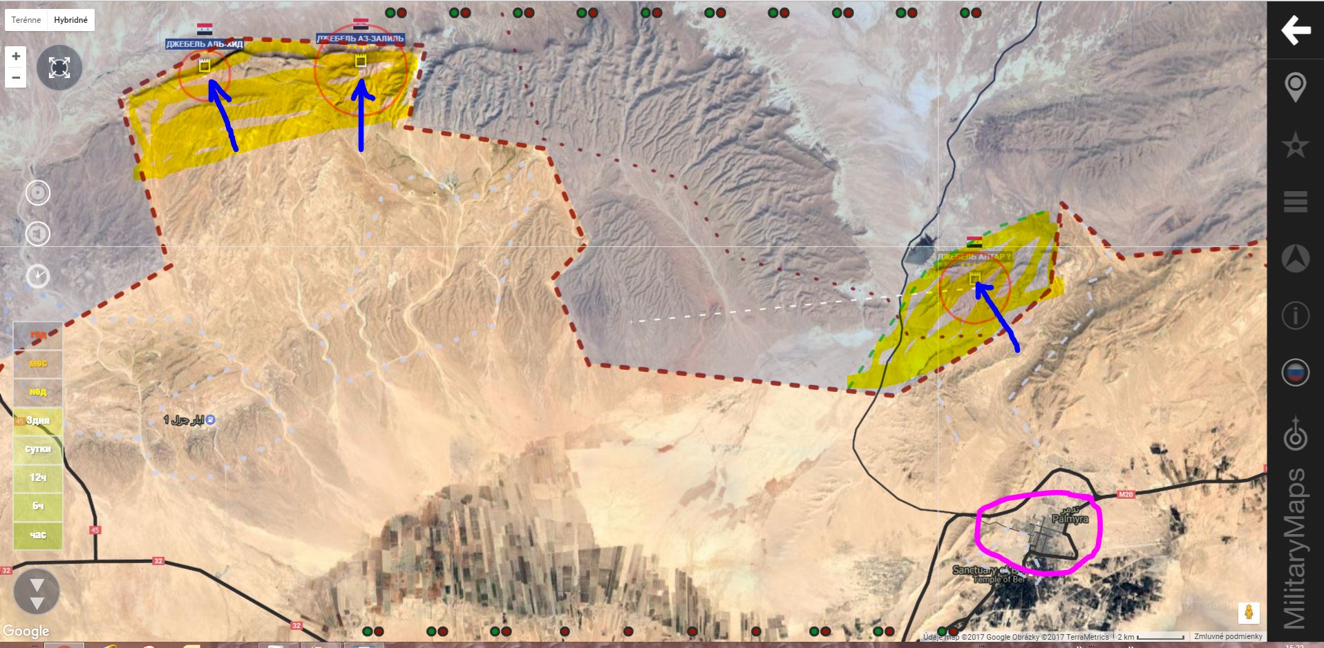 Palmýra. SAA+ získala Jabal Antar, Jabal Zelil a Jabal al Hayd