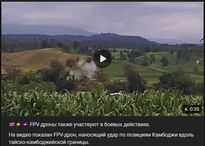 Na videu je vidieť, ako FPV-dron útočí na pozície Kambodže pozdĺž Thajsko-Kambodžskej hranice.