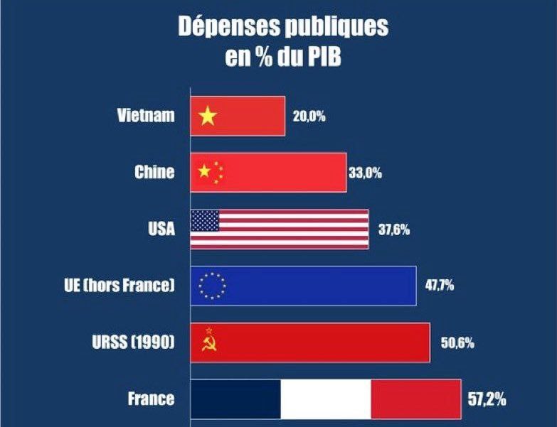 Macron to za deset let své vlády dotáhl tak daleko, že podíl veřejných výdajů na HDP ve Francii nyní činí 57,2 %, což je více než v Sovětském svazu s jeho plánovaným hospodářstvím. @banksta
