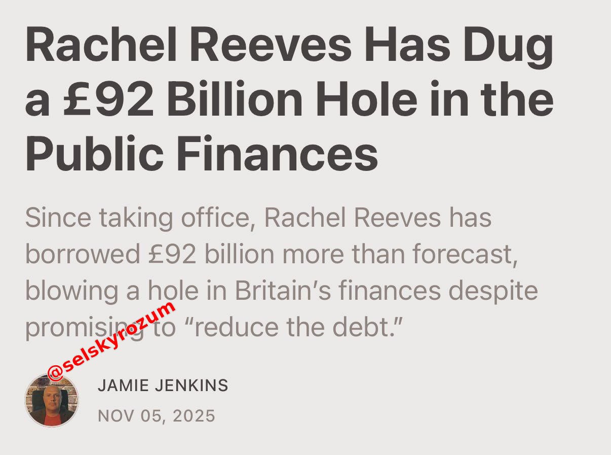 https://t.me/selskyrozum/149042Díra v britském rozpočtu roste neuvěřitelným tempem a již vyžaduje zvýšení daně z příjmu. Výpůjčky po změně vlády neklesly (jak slibovali před volbami), ale naopak překročily prognózu o 92 miliard liber. Nyní Velká Británie vynakládá na obsluhu dluhu více než na obranu a policii dohromady - více než 100 miliard liber ročně. V současné době Velká Británie prakticky ztratila kontrolu nad státními výdaji.