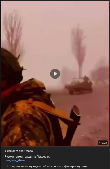 Mlha pomohla Rusům definitivně rozdělit Pokrovský vak na dvě části (https://t.me/legitimniy/21249), což obklíčilo stovky vojáků ukrajinské armády.