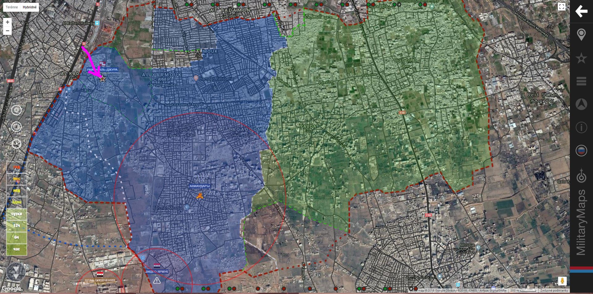 J. Damašek, Jarmuk. SAA+ získala štvrť Al Džura a palebnú kontrolu Al Qadam.