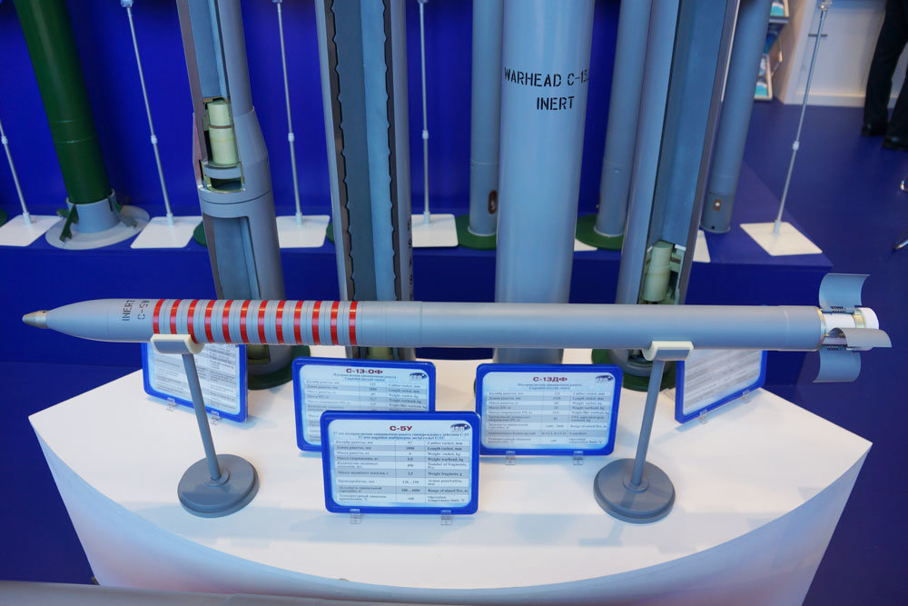 Výstavisko Армия-2018 = Nové bloky pre neriadené rakety rodiny S-8 s označením 9-А-5013 pre 25, 20, 15 alebo 10 ks a ich kombinácia podvesu: