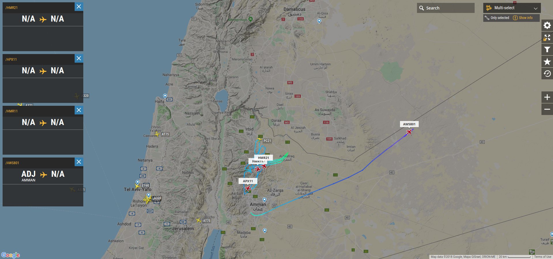 Čtyři zajímavé noname stroje nad Jordánském odstartovali před chvilkou v jednu chvíli (UAV?)