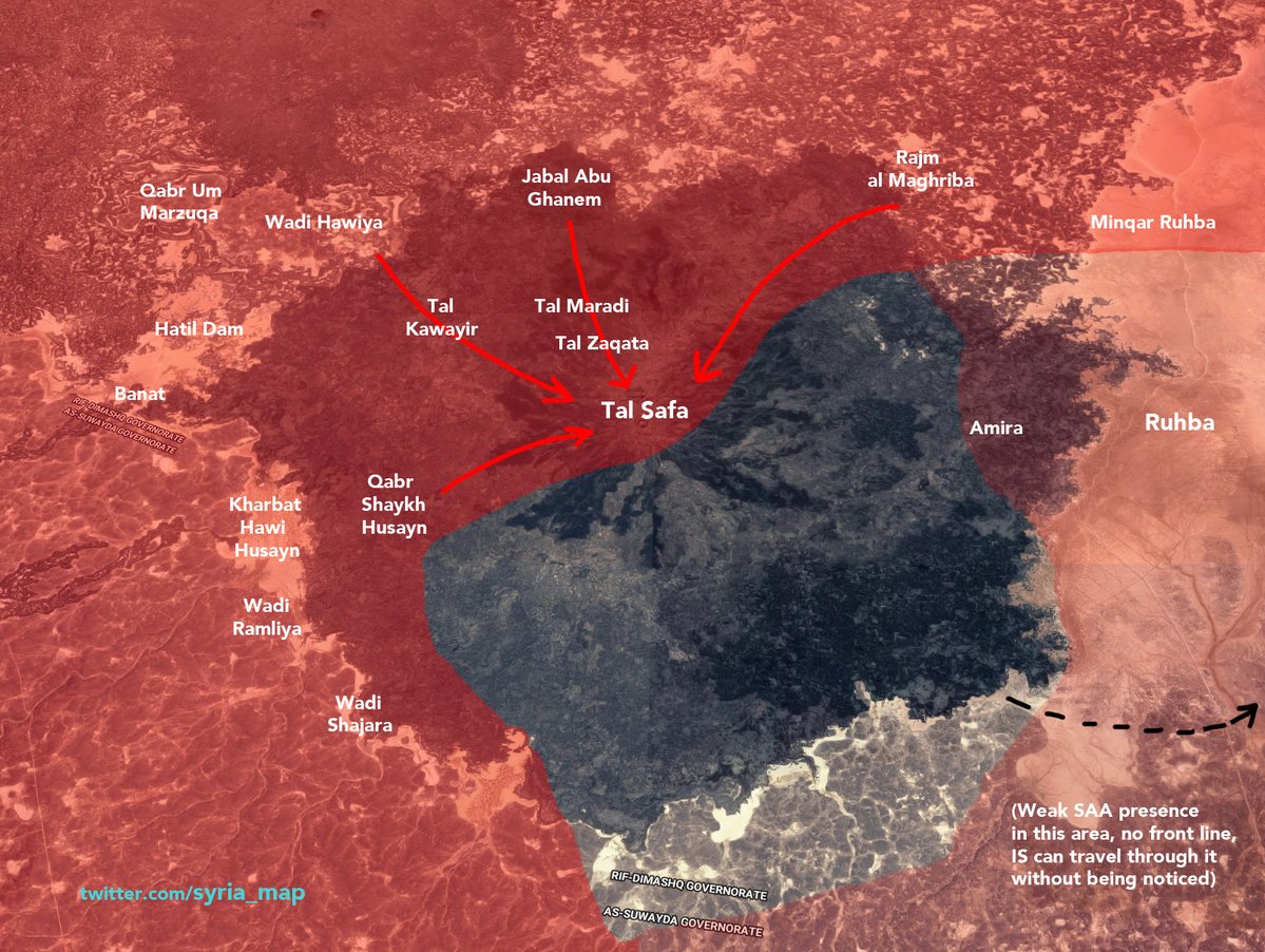 Južná Sýria: Assadské sily oznamujú plnú kontrolu nad Safa vulkanickým poľom. Video nasnímané 61. brigádou ukazuje, že Volcano je pod ich kontrolou. Zdroje hovoria, že ISIS odtiaľ ustúpil predchádzajúcu noc, zanechal tam iba niekoľko bojovníkov.