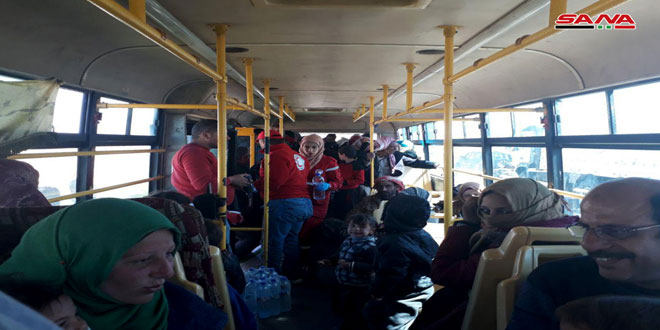 Reportér SANA uviedol, že v stredu popoludní niekoľko autobusov, ktoré poslala sýrska vláda, prepravilo desiatky vysídlených Sýrčanov do dočasných útulkov na bývanie v Homse, potom do ich oblastí oslobodených sýrskou arabskou armádou pred terorizmom.