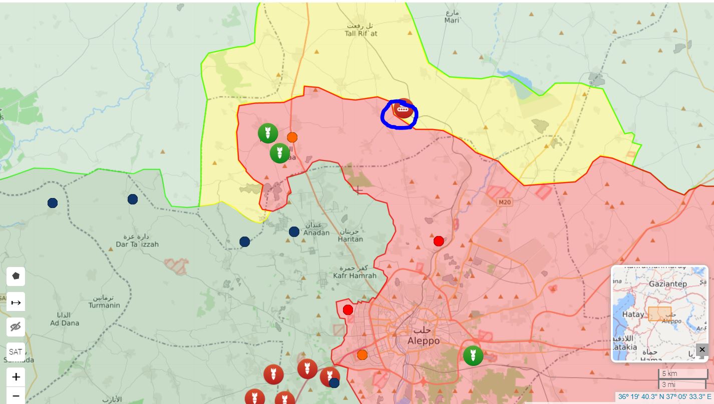 Okolo 200 ~ 250 pro-Assad bojovníkov, tankov a obrnených transportérov prišlo do dediny al Ahr Ardas južne od Tel Rifaat