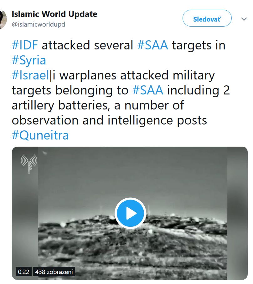 Izraelská armáda zverejňuje ciele SAA, ktoré boli zasiahnuté večer, zahŕňajú delostrelecké postavenie, batériu obrnených vozidiel, spravodajský post a pozorovacie miesto.